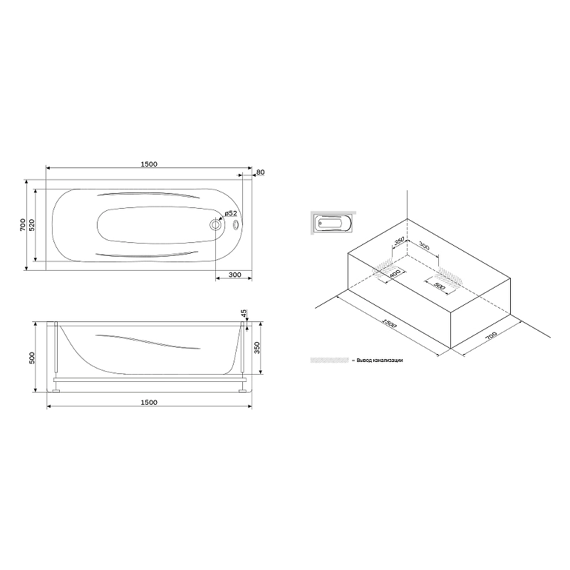 Акриловая ванна Damixa Willow 150х70 WILL-150-070W-A.