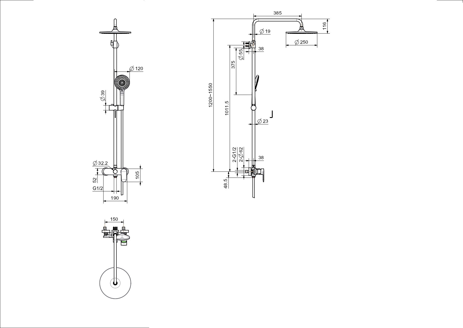 Верхний душ из пластика