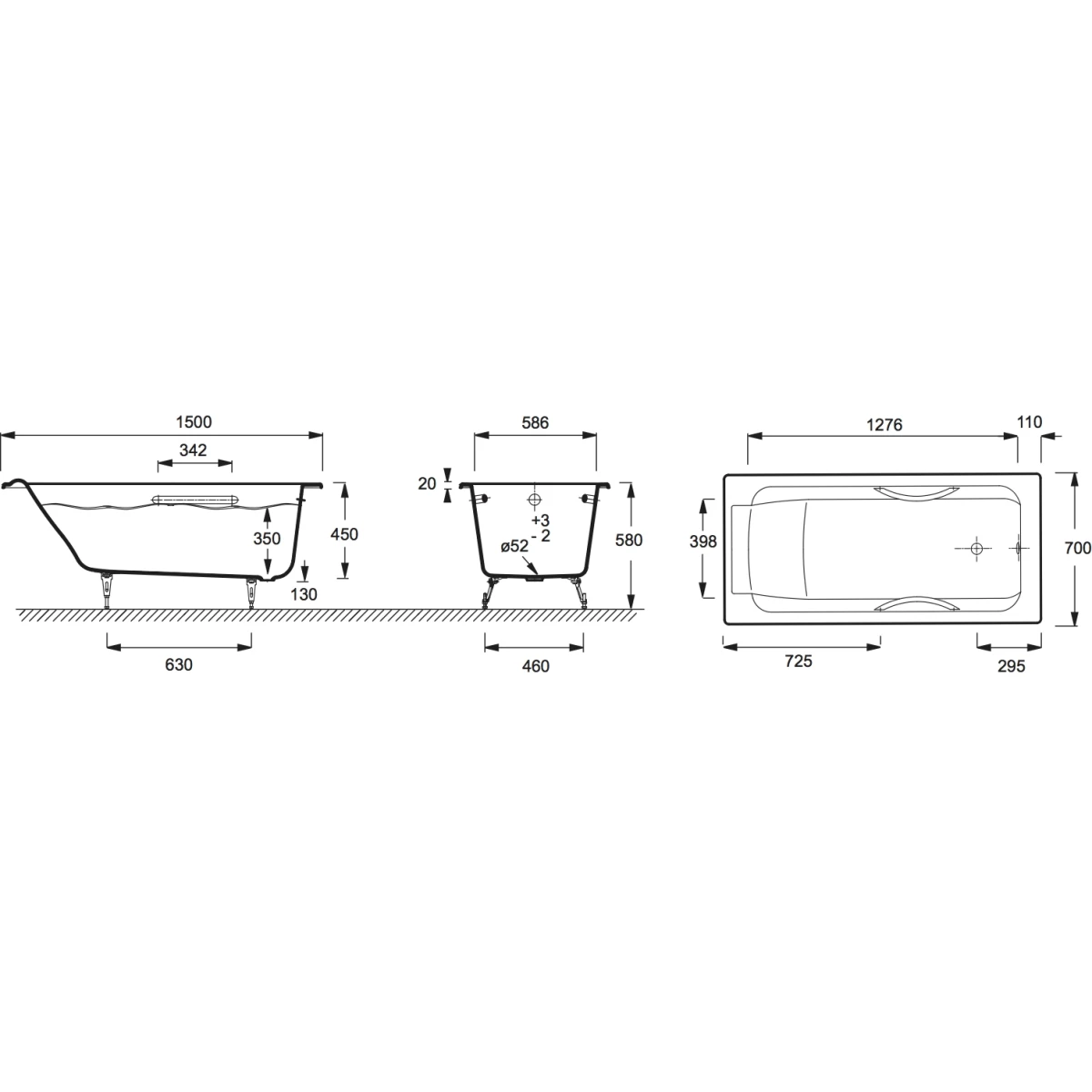 Чугунная ванна Jacob Delafon Parallel E2949-00, 150 x 70 см