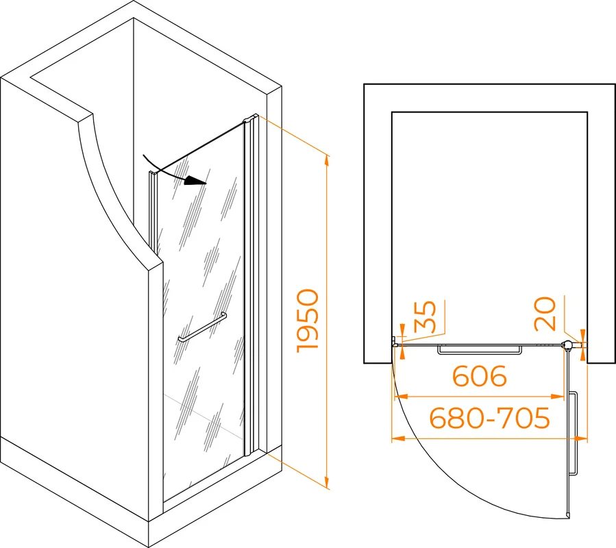 - Исполнение полотна двери: прозрачное закаленное стекло, толщиной 6 мм.