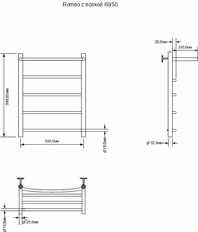 Электрический полотенцесушитель Aquanet Romeo 60х50 R 281990 с полкой.