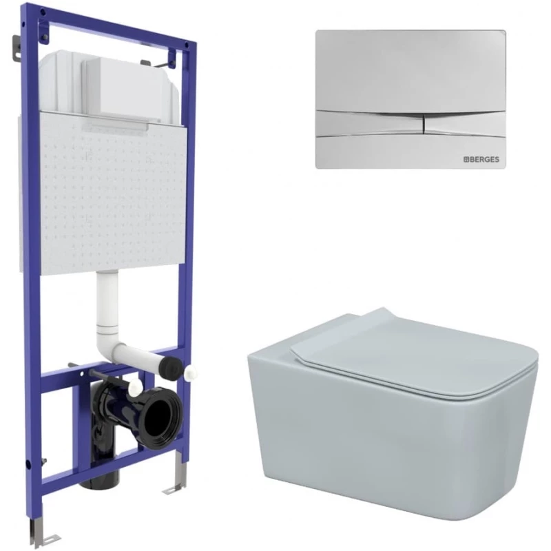 Подвесной унитаз Berges Wasserhaus Floe Rimless с крышкой-сиденьем Floe Slim SO микролифт, в комплекте с инсталляцией NOVUM 525 и кнопкой смыва F3 хром глянцевый, 043223. Универсальная стилистика изделия дополнит большинство ванных комнат в современном интерьере.