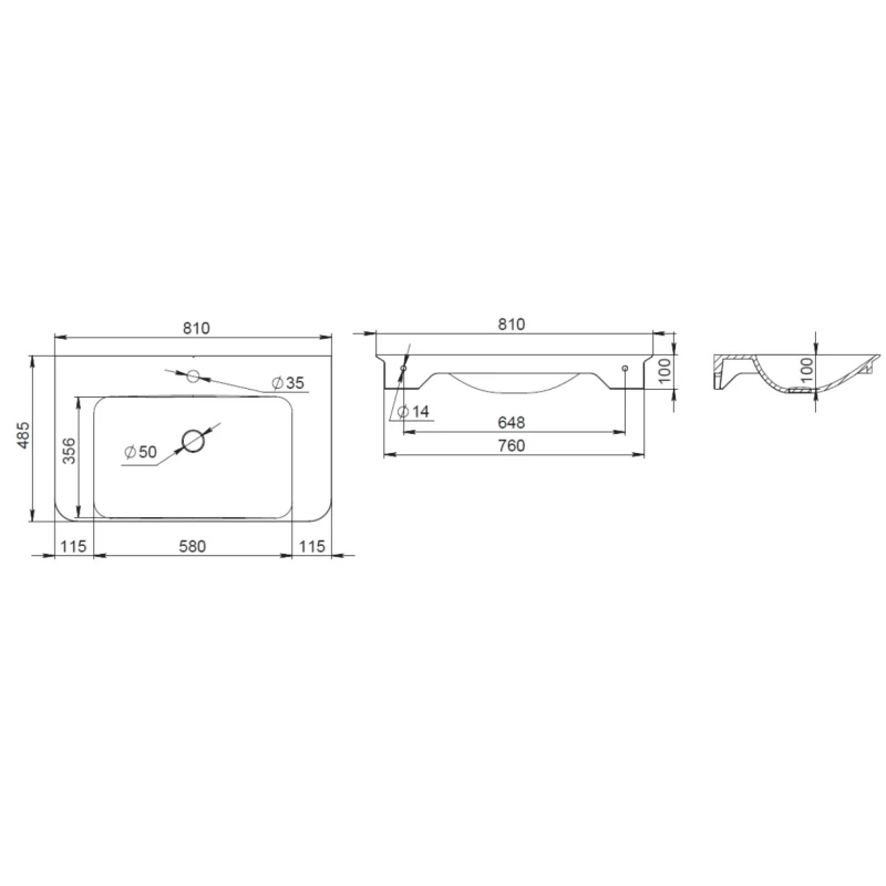 Прямоугольная раковина AM.PM Sensation 81 M30WPC0801WG.