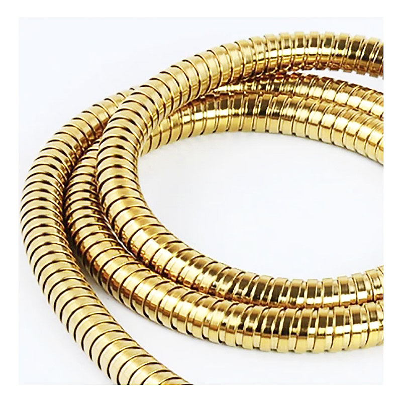 Шланг изготовлен из латуни с покрытием золото, имеет защиту от перекручивания.