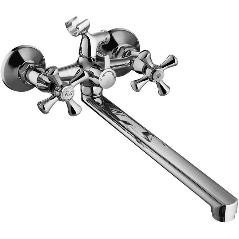 Orange Classic M71-211cr двухзахватный смеситель для ванны и душа с поворотным плоским изливом 350 мм + керамический дивертор с аксессуарами, лейка 1 функция.