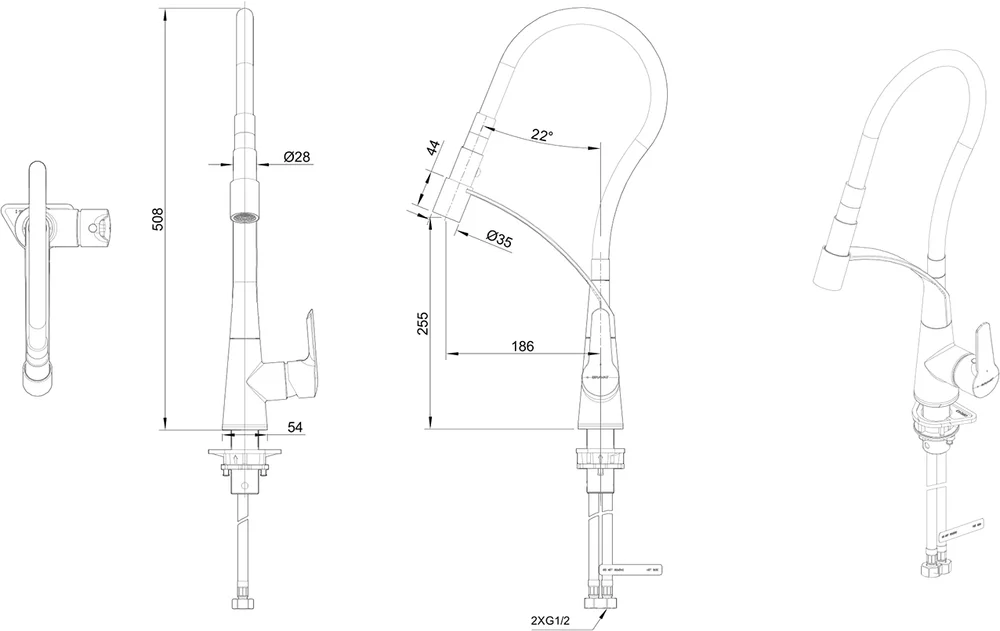 диаметром 35 мм бесшумно смешивает потоки до заданной температуры. Гибкий излив