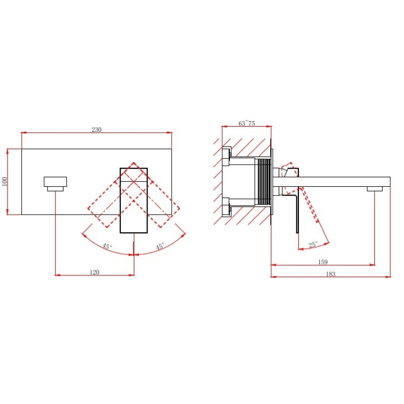 Смеситель D&K Bayern.Liszt DA1514406 для раковины, встраиваемый, излив 18.9 см, цвет графит