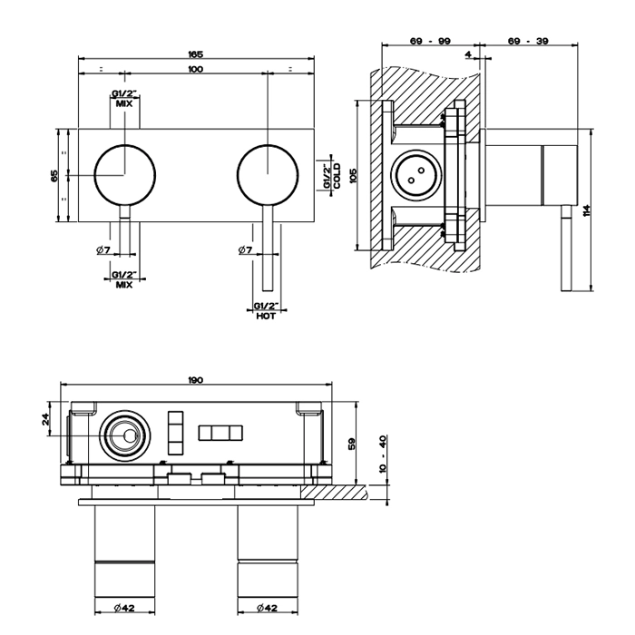 Gessi 316 Встраиваемый смеситель, на 2 источника с автоматическим переключателем, цвет: brushed black metal pvd