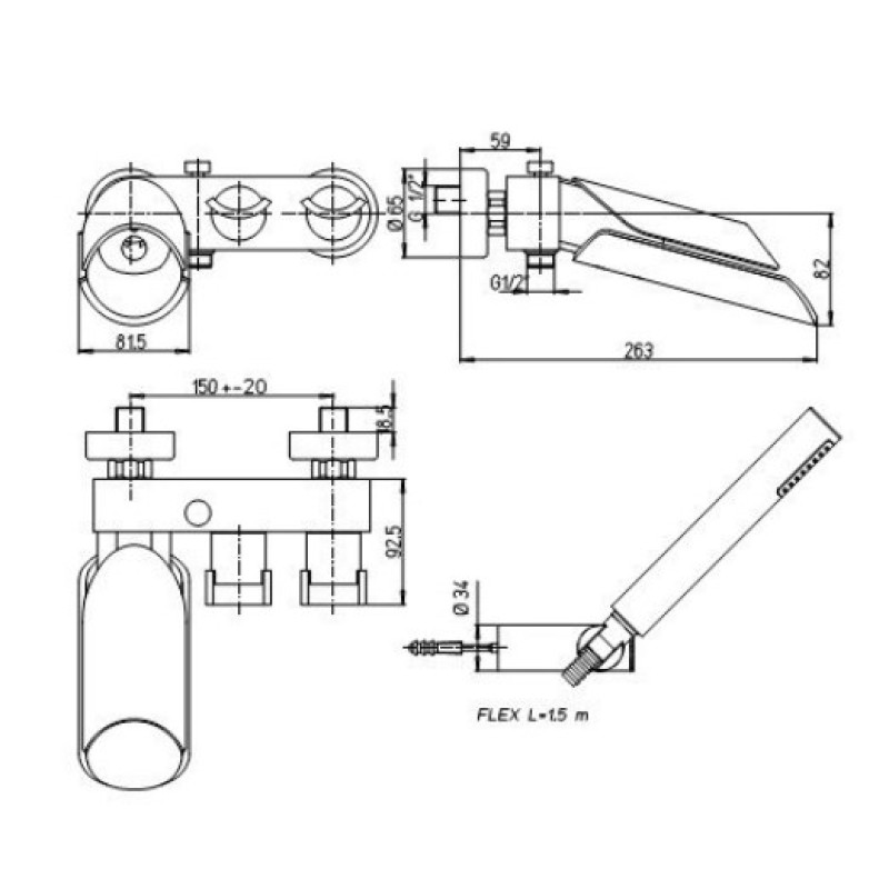 Настенный смеситель для ванны Paini Morgana 73OP105 - современное функциональное решение для организации душевой зоны.