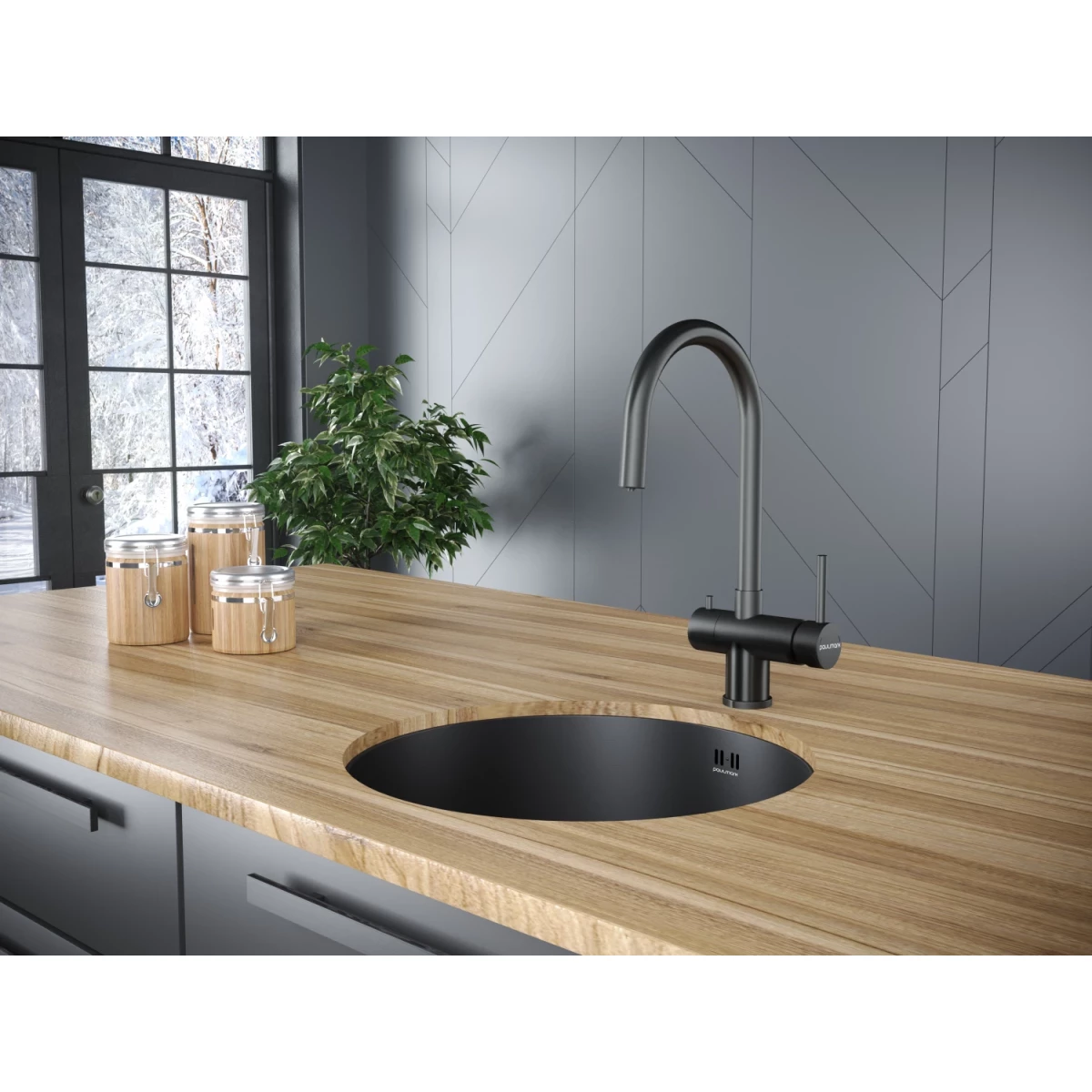 Водопроводная вода и питьевая подаются из одного аэратора. Включение питьевой воды осуществляется отдельной ручкой. В конструкции использован картридж Sedal с керамическими пластинами.