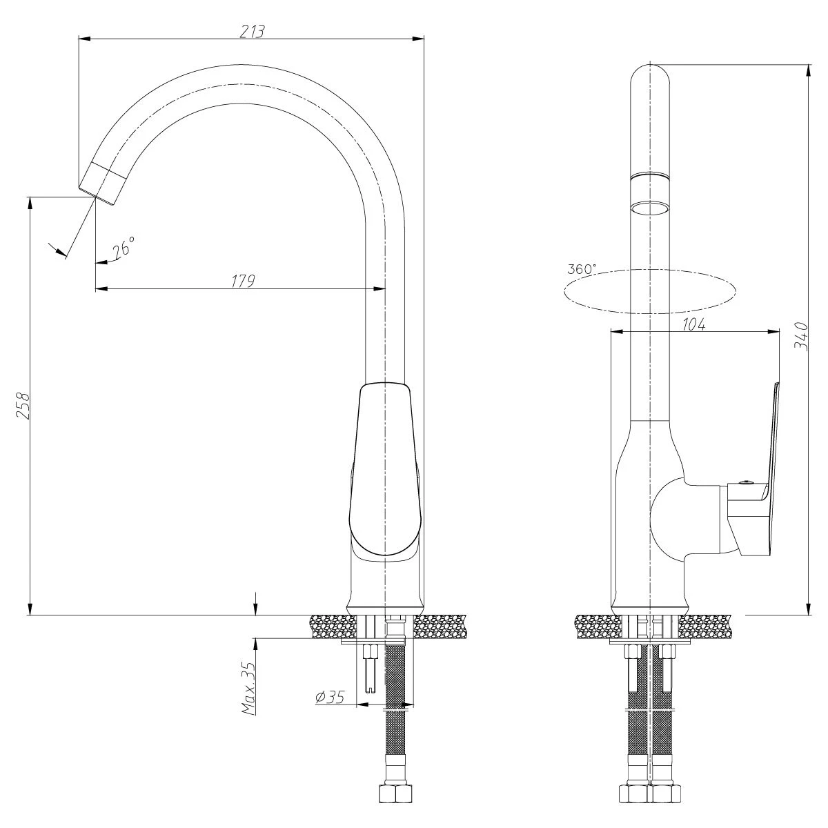 Дополнительные характеристики:Гибкая подводка 30 см с накидными латунными гайками