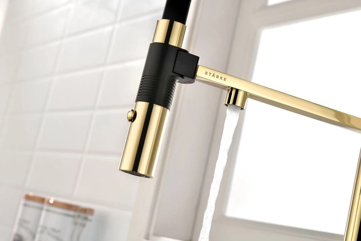 Смеситель для кухни Paulmark Siegen Si213111-BG, с подключением к фильтру, цвет брашированное золото \ черный