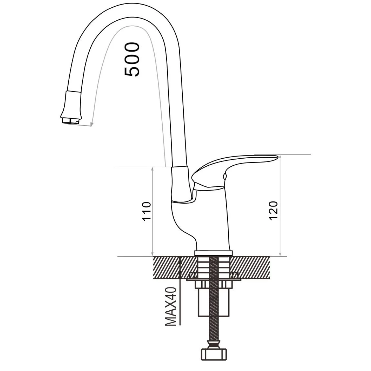 Смеситель для кухни Shevanik S943L-9 с гибким изливом, сатин