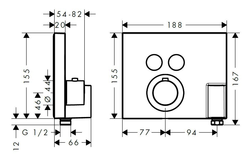 Axor ShowerSelect 36712000 Термостат с 2 запорными клапанами, держателем FixFit, СМ, цвет: хром