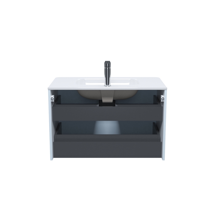 • Два выдвижных ящика закрываются плавно и бесшумно благодаря высококачественным скрытым направляющим с доводчиками немецкого производства.