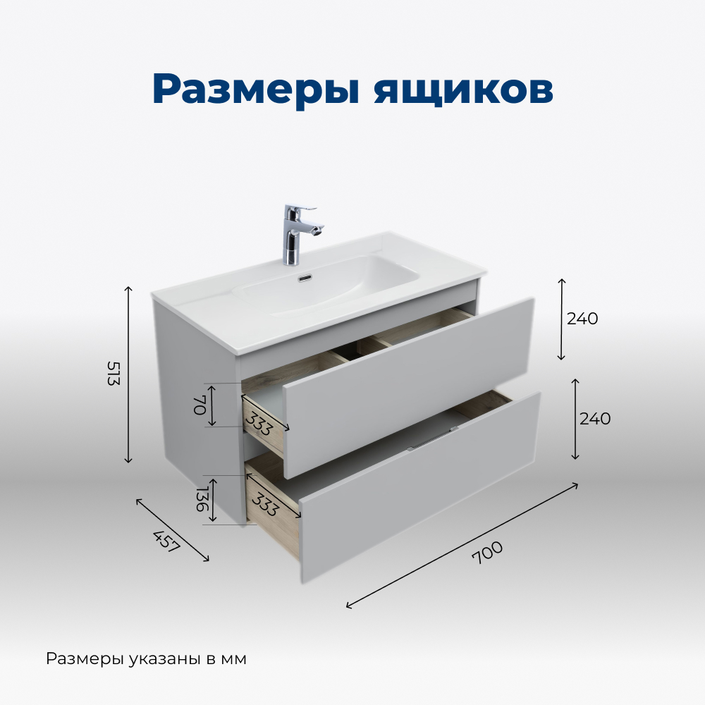 Тумба под раковину Aquanet Алвита New 00303899 1 ящик, 2 дверцы, 70x45.7 см, серый