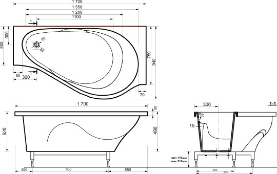 Ванна из искусственного камня Эстет Дельта 170x70 ФР-00000651